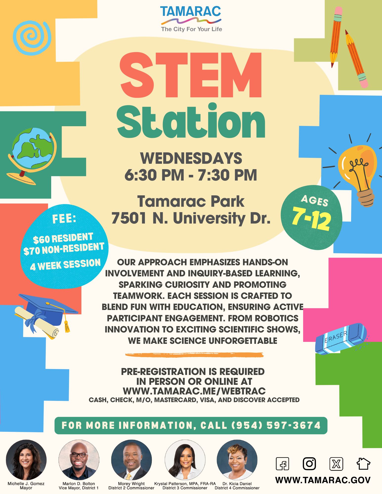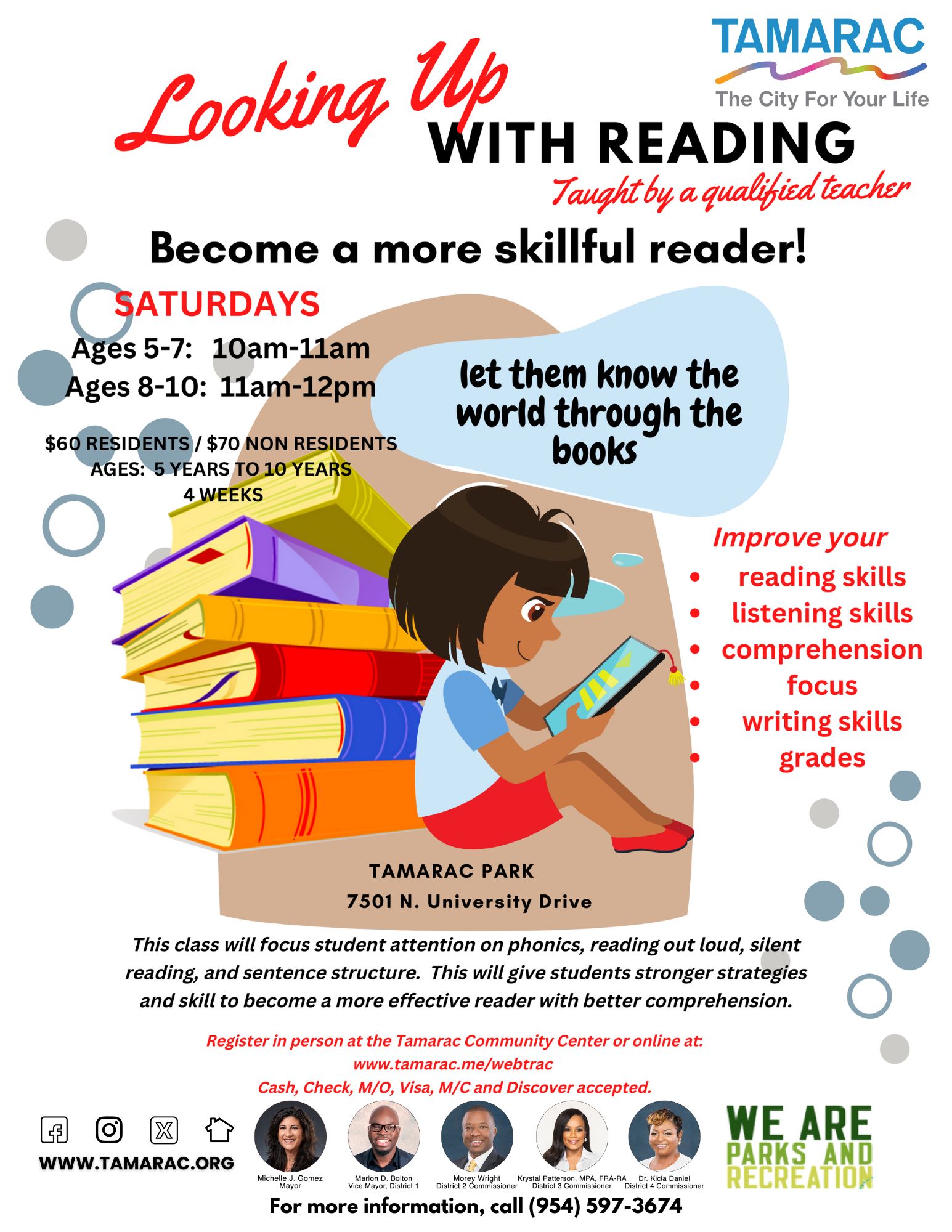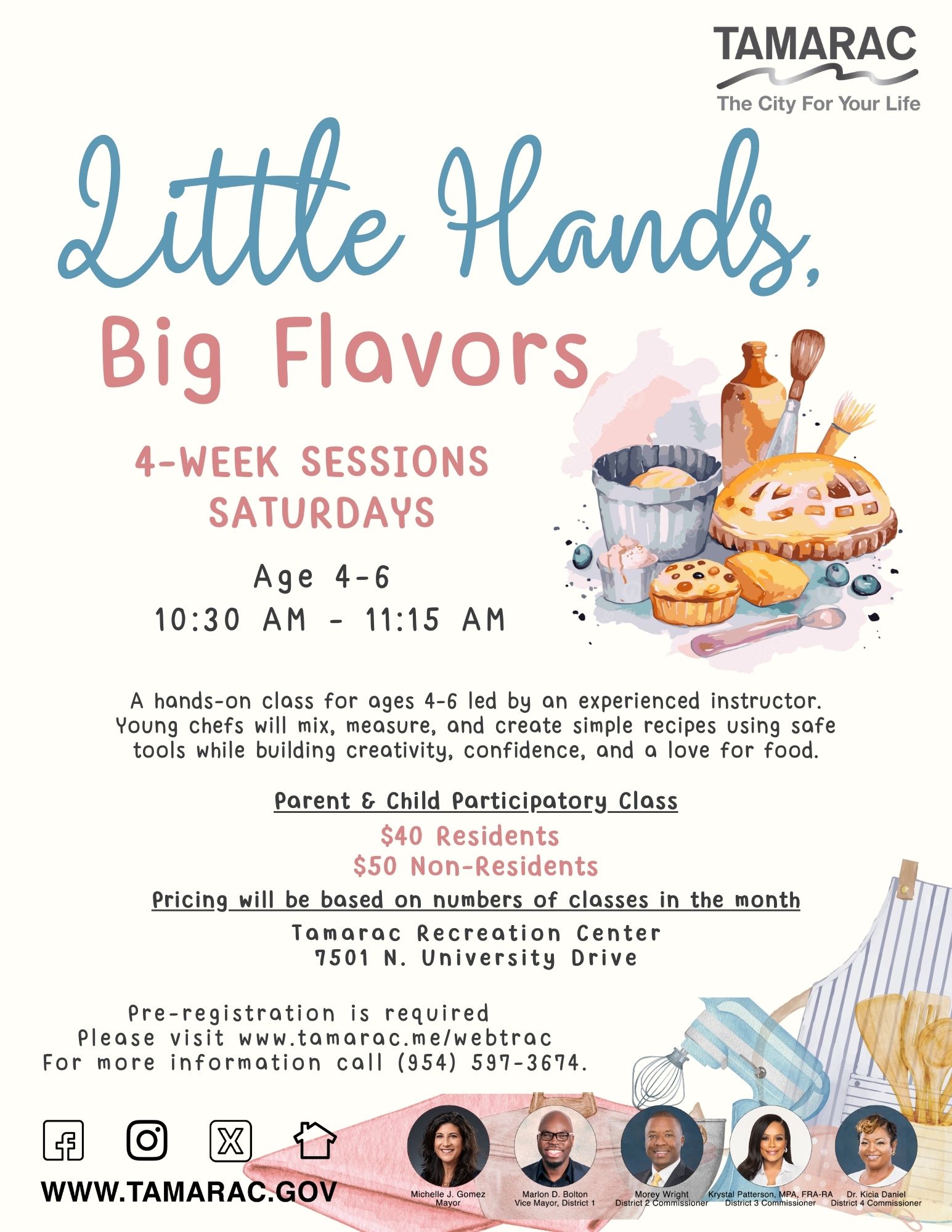 The Tamarac Parks and Recreation Department offers a variety of youth programs for ages 2 years and older. Classes are located at Tamarac Recreation Center, 7501 N. University Drive. Classes and schedules are subject to change.